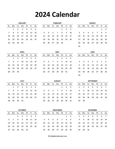 Using an editable calendar 2024 free is a great way to plan your year ahead. It’s convenient, customizable, and easy to use. You can keep track of important dates, appointments, and events without having to carry around a physical calendar. Plus, you can access it from anywhere, as long as you have an internet connection. So why not give it a try and see how it can improve your life?